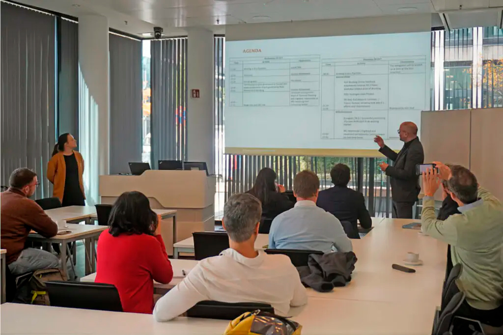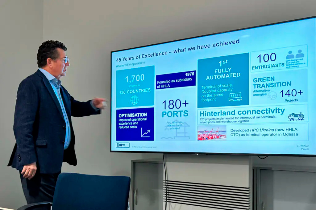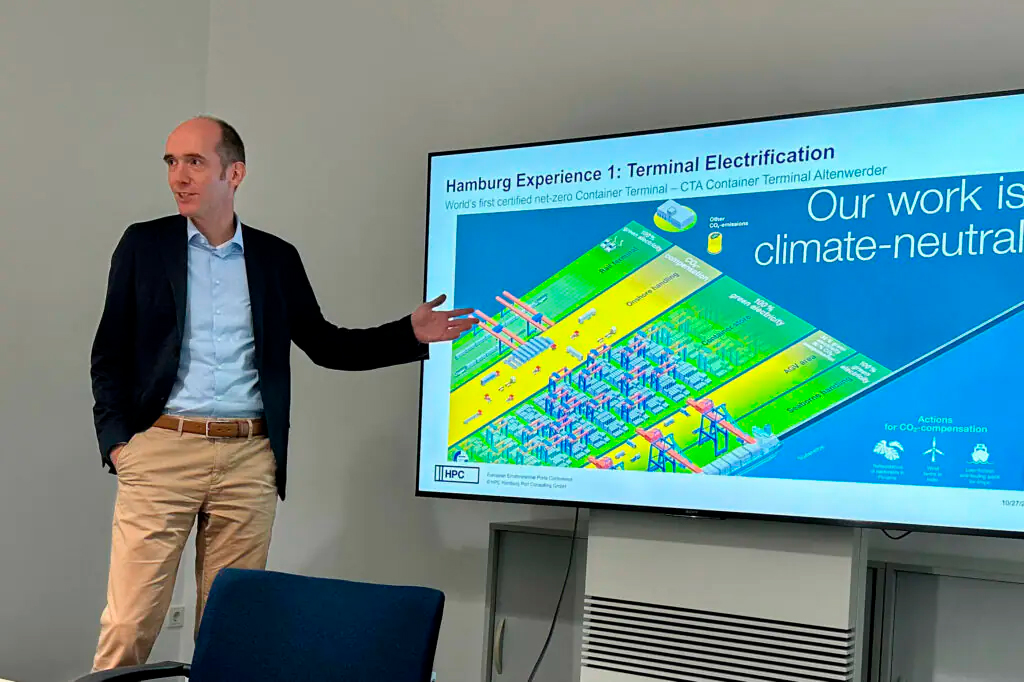 La última jornada de nuestra misión, partió con una visita a HPC Hamburg Port Consulting GmbH, consultora de Hamburgo especializada en la gestión de puertos, automatización y procesos sostenibles, lugar en que compartimos con Pablo Bowen-Bobenrieth y Nils Kemme para discutir junto a nuestra delegación acerca de las diversas tecnologías y operaciones que se están desarrollando en dicha ciudad y su aplicación en Latinoamérica. Más tarde, nos reunimos con la Handelskammer Hamburg, en las instalaciones de KLU, donde pudimos apreciar la valiosa labor que desarrolla para fomentar el trabajo colaborativo en distintos ámbitos logísticos y su dedicación en fomentar el crecimiento del capital humano a través de la formación dual. Carsten Schryver, de Schryver – International Freight Forwarders, nos compartió su visión del mercado chileno.