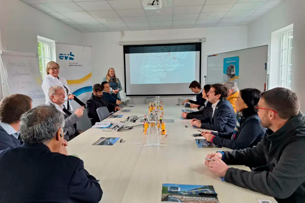 Las dos últimas jornadas también tuvieron lugar en Hamburgo, con visitas a terreno en Bremervörde y Wilhelmshaven: Iniciamos en la empresa Eisenbahnen und Verkehrsbetriebe Elbe-Weser (evb) GmbH, donde nos reunimos con Lena Kaplan, que nos mostró los últimos avances en trenes que operan con hidrógeno, tecnología que prontamente servirá para el transporte de carga. Continuamos visitando Wilhelmshaven, puerto de aguas profundas, donde analizamos las características y diferencias existentes entre un puerto de río y uno de mar. Nos guiaron en cada una de estas visitas nuestro Director Gordon Wilmsmeier, Diana L Trujillo R, del equipo de KLU, y Nils-Olaf Klabunde.