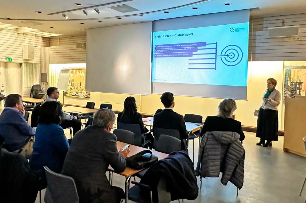 Luego, tuvimos una interesante reunión con Ann-Sofi Karlsson, Gerente de Planificación de Mercancías y Logística Urbana de la Ciudad de Gotemburgo, Göteborgs Stad, en la que pudimos escuchar los últimos adelantos y facilitaciones que se han realizado para dar solución a los desafíos de la última milla y el transporte de mercancías al interior de dicha ciudad.
