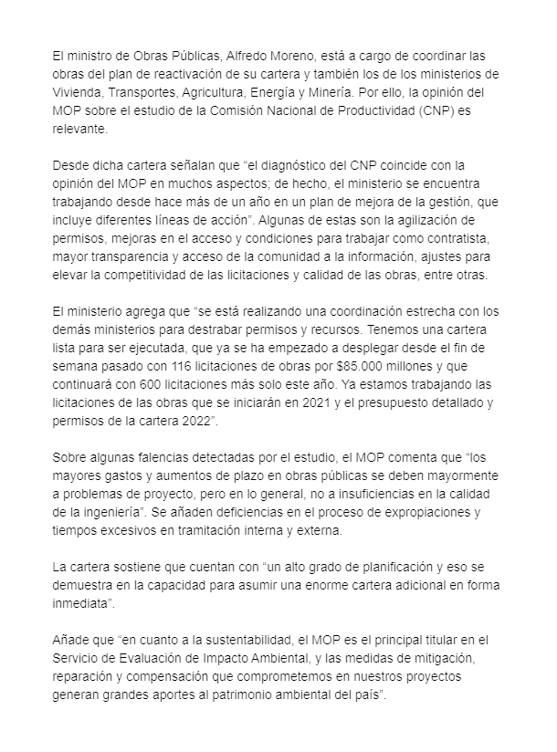 EL MERCURIO – La cartera sostiene que cuentan con “un alto grado de planificación y eso se demuestra en la capacidad para asumir una enorme cartera adicional en forma inmediata”