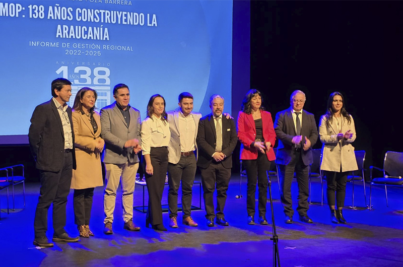 RADIO TEMUCO – Con una masiva concurrencia de dirigentes y beneficiarios, el Seremi de Obras Públicas de la Araucanía, Patricio Poza, dio cuenta del informe regional de la gestión MOP entre el año 2022-2025, actividad que contó la participación del equipo de directores regionales de la entidad ministerial, además de la presencia de autoridades comunales, representantes de la cámara Chilena de la Construcción, Seremis, entre otras personalidades.