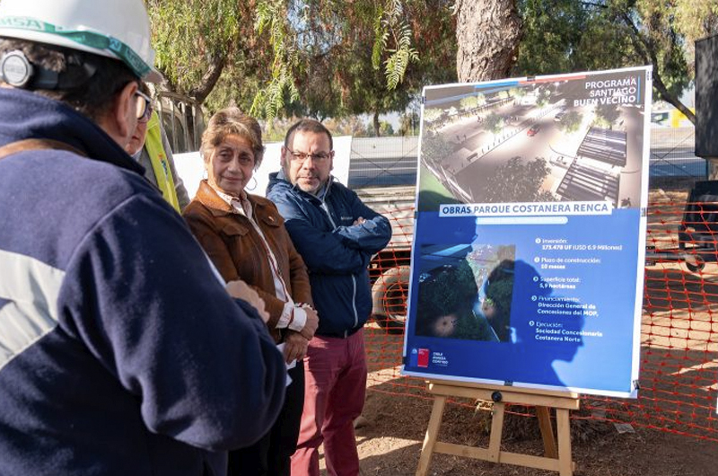 PUBLIMICRO – La ministra de Obras Públicas, Jessica López, junto a la subsecretaria de Prevención del Delito, Carolina Leitao; al delegado Regional Presidencial, Gonzalo Durán, al alcalde de Renca, Claudio Castro, y al gerente general de Costanera Norte, Diego Savino, asistieron al comienzo de obras que remodelarán por completo las 5,9 hectáreas del Parque Costanera Renca. Estas obras son parte del programa de Concesiones “Buen Vecino” y significarán una inversión por parte del MOP de casi USD$ 7 millones, que serán ejecutadas por la concesionaria Costanera Norte. La recuperación del parque contempla áreas para deporte, recreación infantil, adultos mayores, mascotas y multicanchas renovadas, junto con iluminación, cámaras de seguridad y accesos controlados. El proyecto también contempla el cierre del perímetro del parque con cierre antivandálico e instalar un sistema de circuito cerrado de televisión. Estas medidas permitirán tener un control de acceso del parque, cerrarlo durante la noche e implementar un sistema de guardias conjuntos entre el municipio y la concesionaria para disminuir los robos y vandalismo. El proyecto considera también reemplazar la explanada para los feriantes por un área de «Skatepark»; reemplazar la cancha de futbol, que no cumple con el tamaño oficial, por un área destinada preferentemente a adultos mayores (Centro Cívico), incorporara un área para mascotas y nuevos juegos, entre otros elementos.
