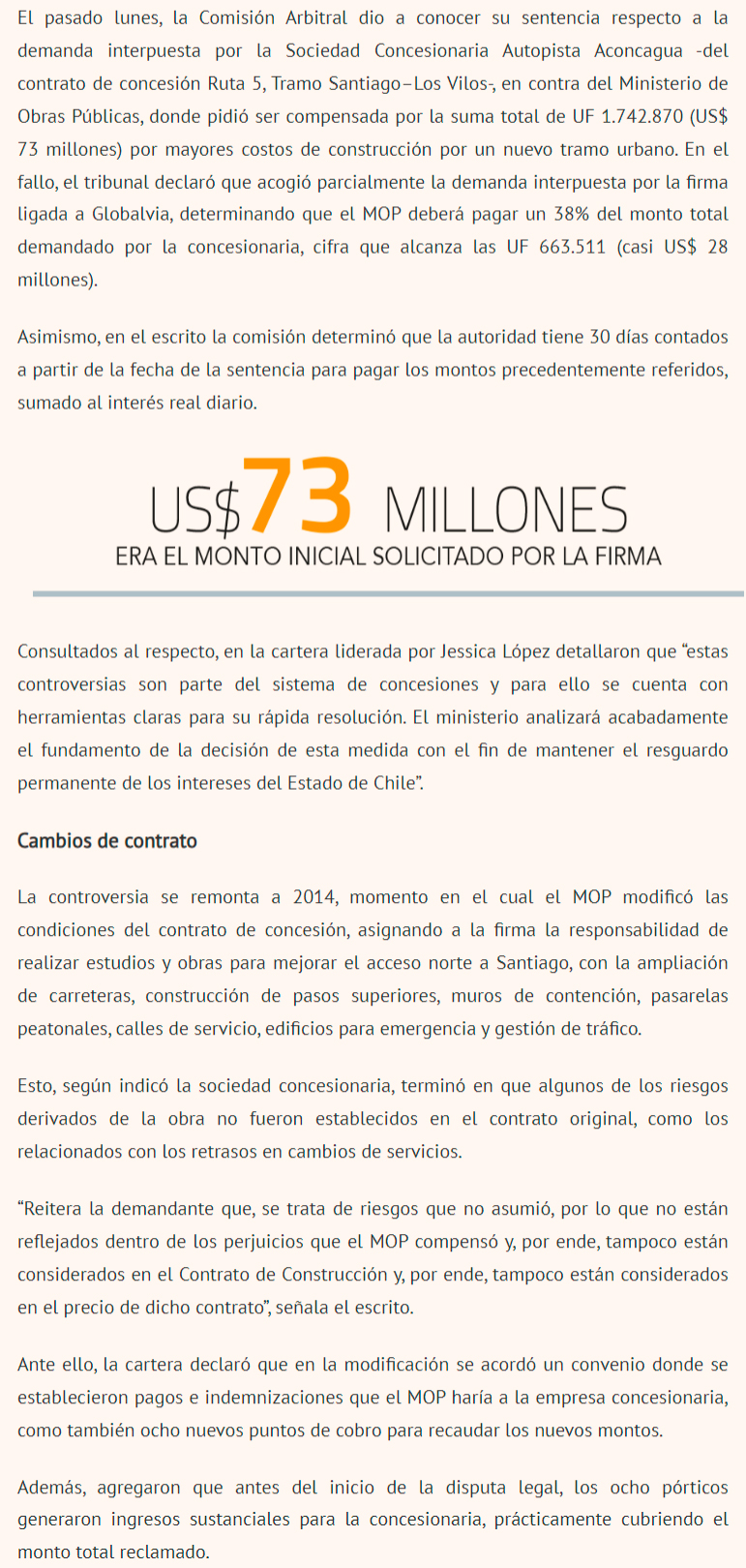 DIARIO FINANCIERO – Esto luego de que la empresa ligada a Globalvía experimentara mayores costos de construcción por un nuevo tramo urbano en la obra.