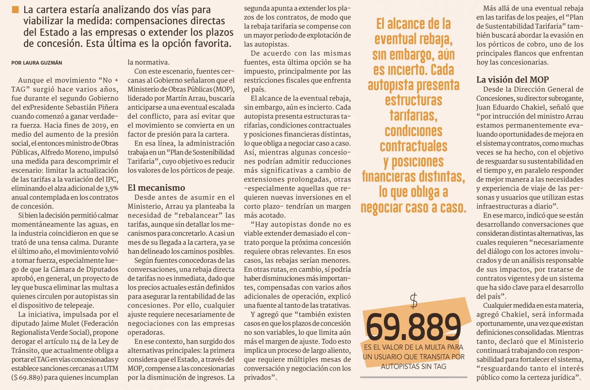 DIARIO FINANCIERO – La cartera estaría analizando dos vías para viabilizar la medida: compensaciones directas del Estado a las empresas o extender los plazos de concesión. Esta última es la opción favorita
