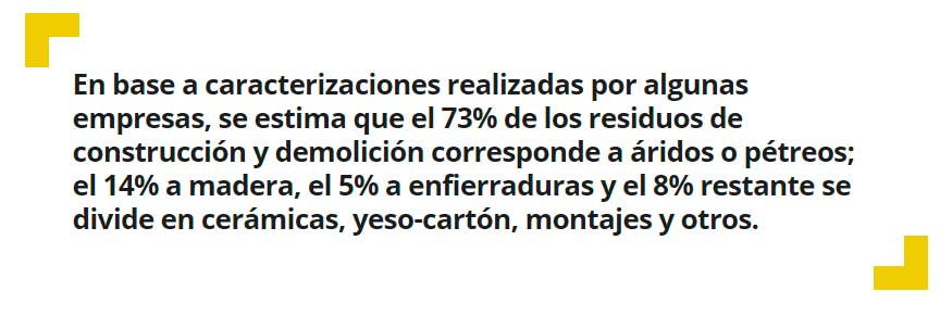 Actualmente los RCD representan un 34% de los residuos sólidos que se generan en Chile, y se proyecta que a 2023 estos alcanzarán las 7,4 millones de toneladas anuales en el país -el equivalente a 15,5 estadios nacionales- solo en lo relativo a viviendas. Esto en un escenario en que solo seis regiones del país cuentan con sitios autorizados para su disposición final, lo que implica que gran parte de ellos termina en basurales ilegales o riberas de ríos.