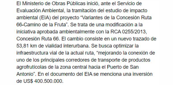 EL MERCURIO – La modificación consiste en un nuevo trazado de 53,81 kilómetros de vialidad interurbana