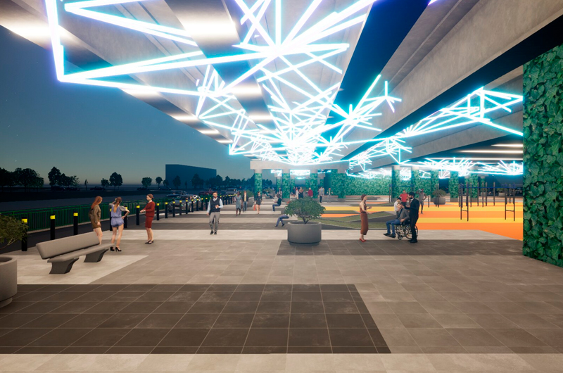 Entre las principales obras que se ejecutarán, destaca la habilitación de equipamiento deportivo, además de juegos gimnásticos y un skatepark. También, zonas de comercio y servicios, además de una explanada para el desarrollo de actividades, además de contempla paradas temporales de autos para tomar y dejar pasajeros del Metro.