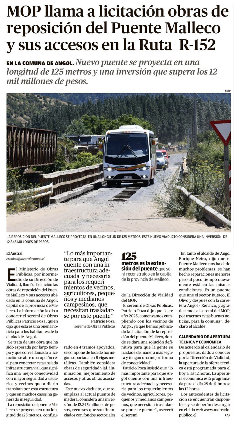 EL AUSTRAL TEMUCO – Nuevo puente se proyecta en una longitud de 125 metros y una inversión que supera los 12 mil millones de pesos