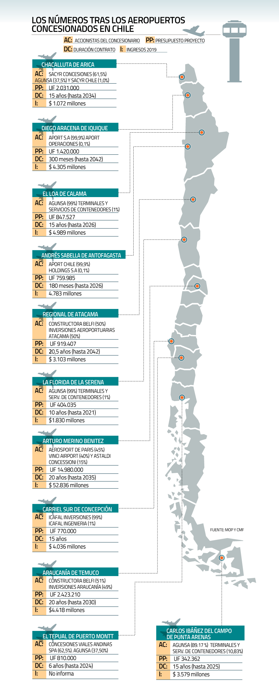Cabe recordar que, junto con la operación del recinto, Nuevo Pudahuel está construyendo actualmente el Terminal 2 del aeropuerto, que estaría siendo entregado en julio de 2021 y su funcionamiento a tiempo sería una de las principales preocupaciones para el Estado.
