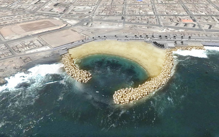 El primer balneario artificial de Iquique será emplazado en el sector costero de Playa Brava a partir de 2021. Habilitará 300 m de costa para los bañistas y una berma de entre 30 y 90 m de extensión, ubicada bajo la rotonda de Chipana.