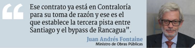 “Ese contrato ya está en Contraloría para su toma de razón y ese es el que establece la tercera pista entre Santiago y el bypass de Rancagua”, dijo el secretario de Estado.