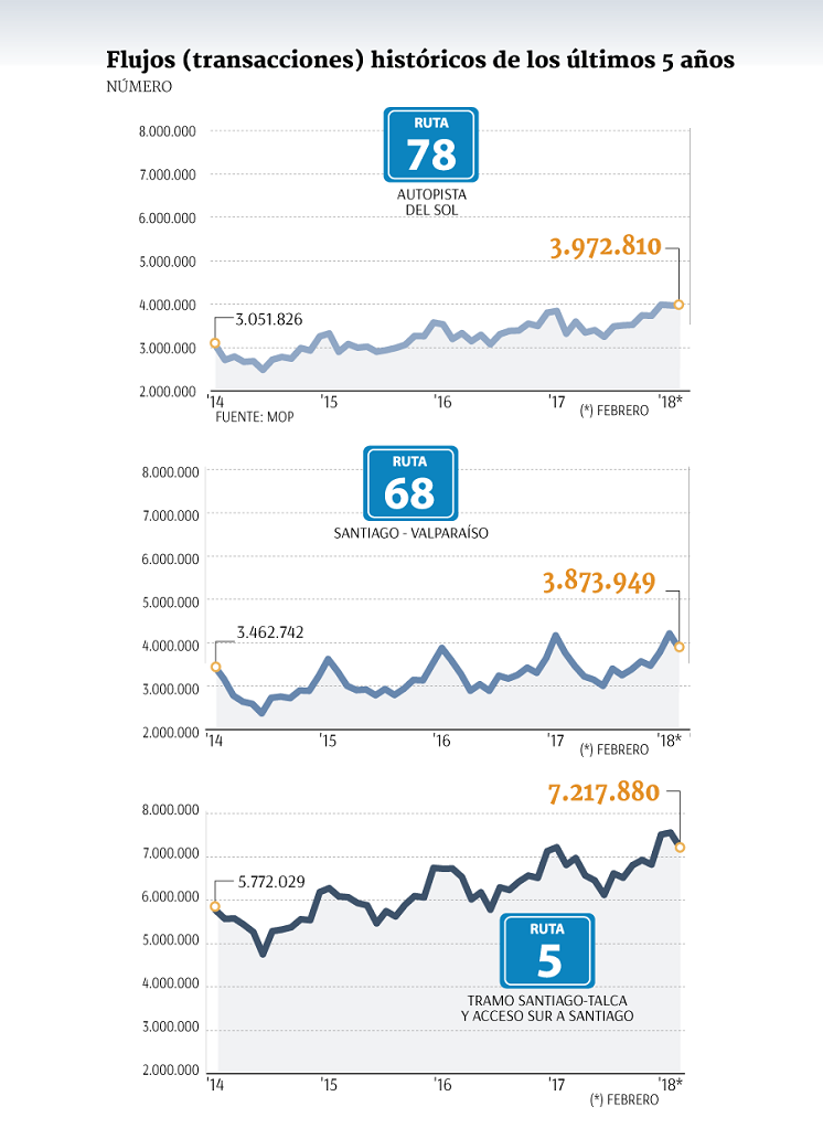 En enero, la administración Bachelet descartó la recompra de la ruta (que hubiese costado US$ 470 millones) y optó por mantener la concesión a cambio de exigencias para mejorarla con inversiones por hasta US$ 170 millones.