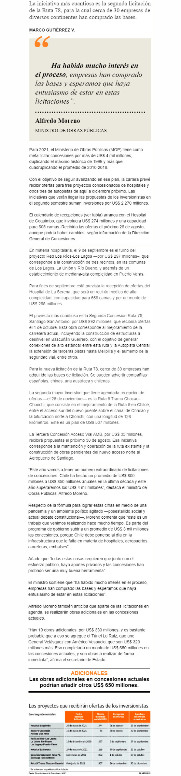 Fuente: El Mercurio, Miércoles 18 de Agosto de 2021