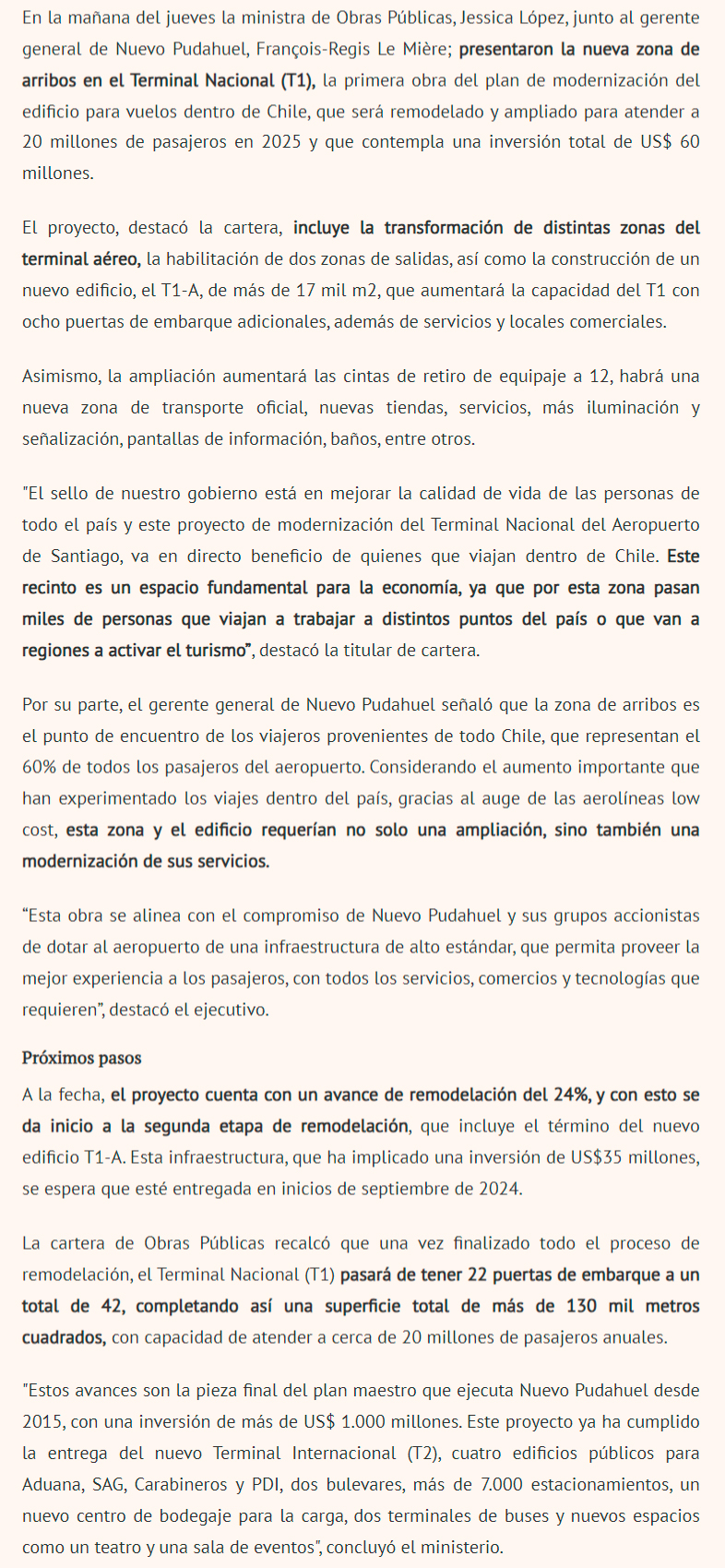 DIARIO FINANCIERO – El proyecto de modernización alcanza un 24% de avance e incorporará el nuevo edificio T1-A y dos conexiones directas.