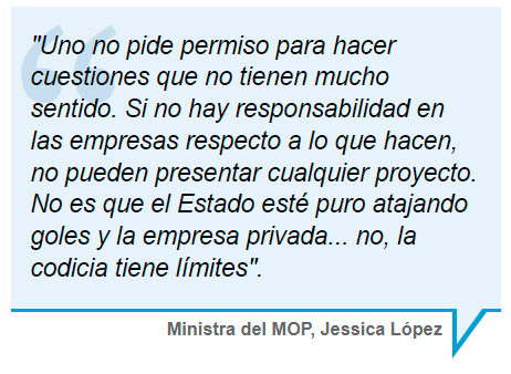 Y agregó: “Yo estoy de acuerdo que al final que todo pasa por permisos del Estado, pero aquí estamos hablando de personas adultas, personas cultas, informadas, profesionales, empresarios de alto nivel, que tienen que tener conciencia que las obras que hacen tienen impacto, no es sólo si el señor de la Dirección de Obras Municipales me da el permiso”.