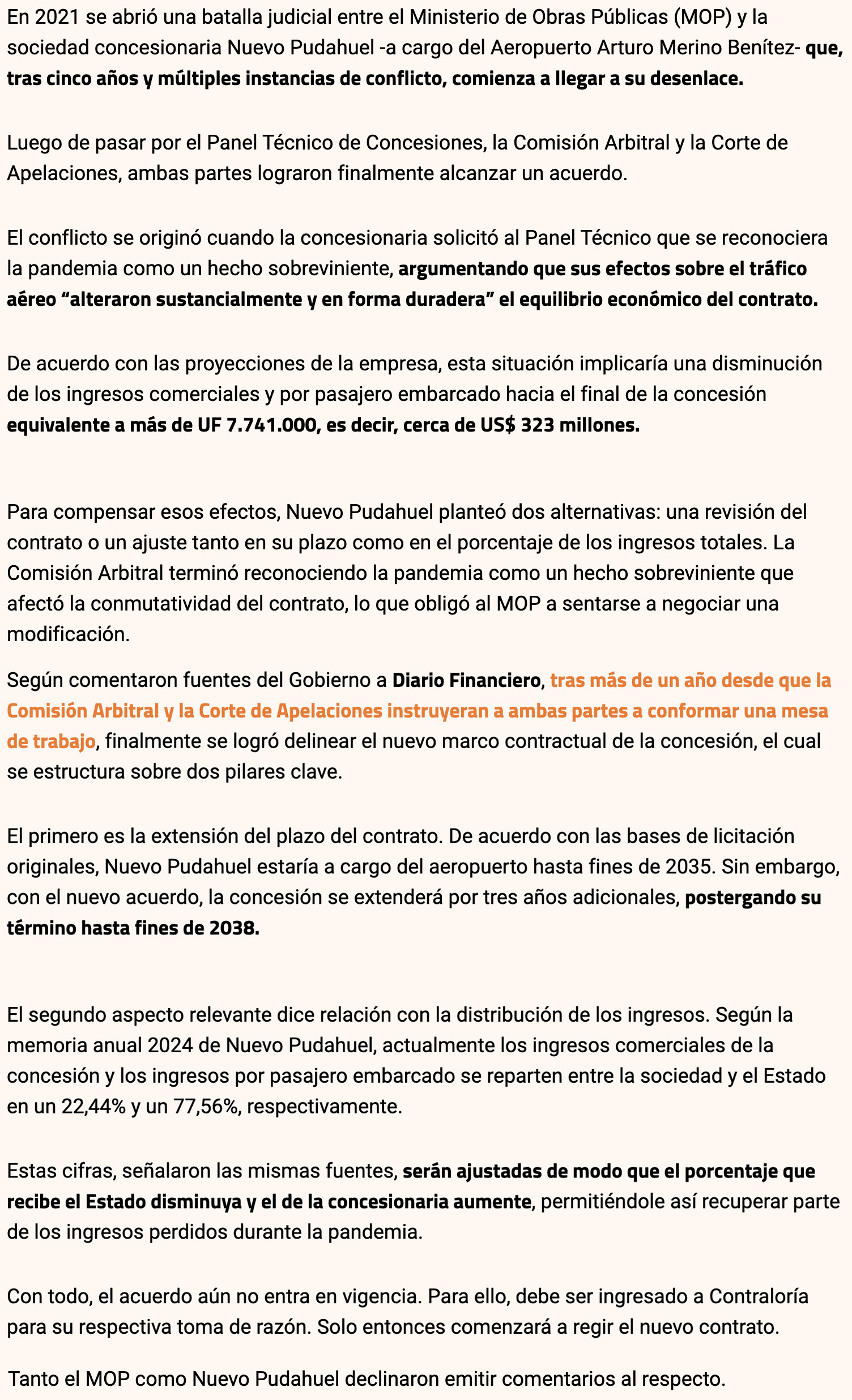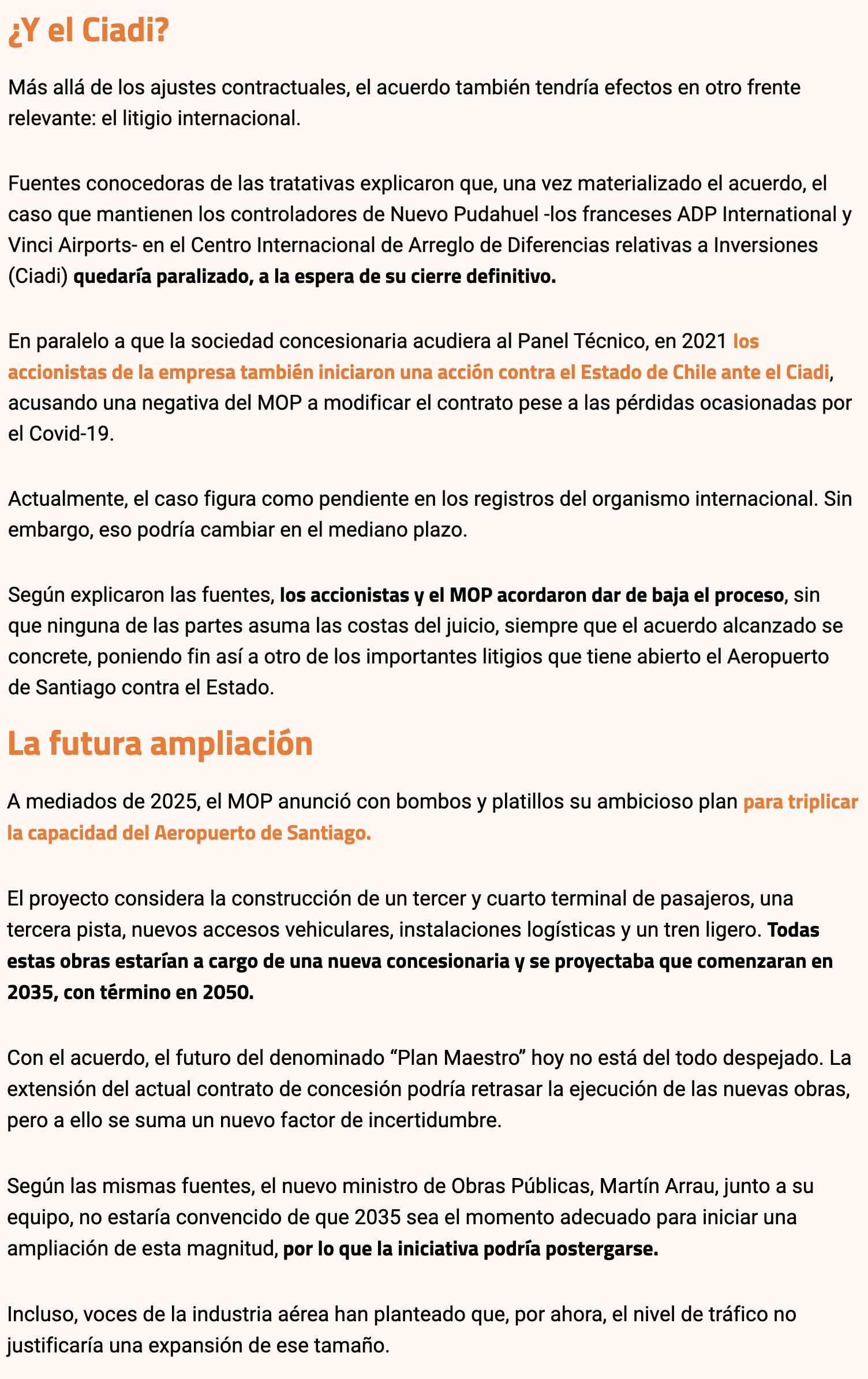 DIARIO FINANCIERO – El acuerdo, que debe pasar por Contraloría, también permitiría cerrar el arbitraje iniciado en 2021 por los controladores de la concesionaria en el Ciadi contra el Estado de Chile