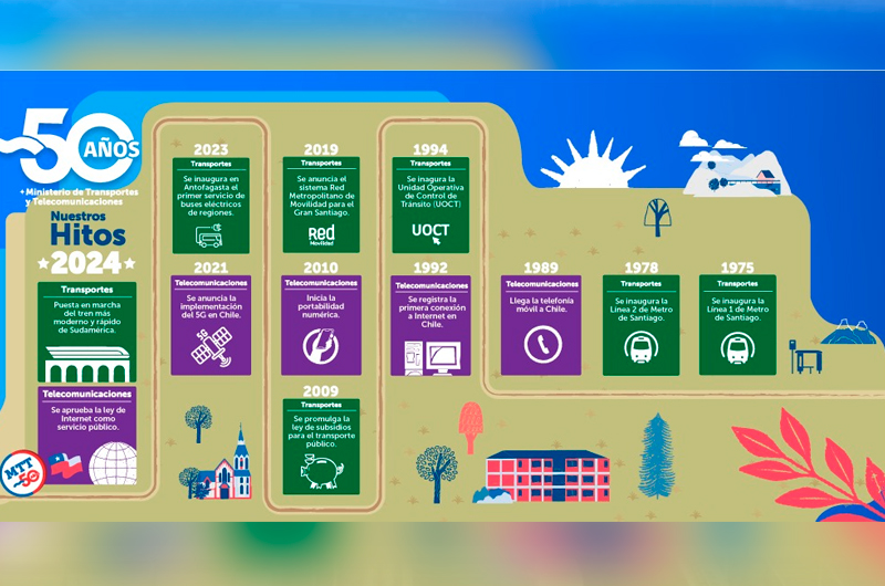 G5 NOTICIAS – Son cinco décadas conectando de manera física y digital a las y los chilenos desde Arica a Magallanes, con el objetivo de avanzar hacia la equidad territorial y equiparar la cancha en materia de transportes y telecomunicaciones. El MTT está de cumpleaños hoy y, en sus bodas de oro, destacamos el propósito que nos moviliza: acortar distancias y acercar a todos quienes habitan nuestro país.