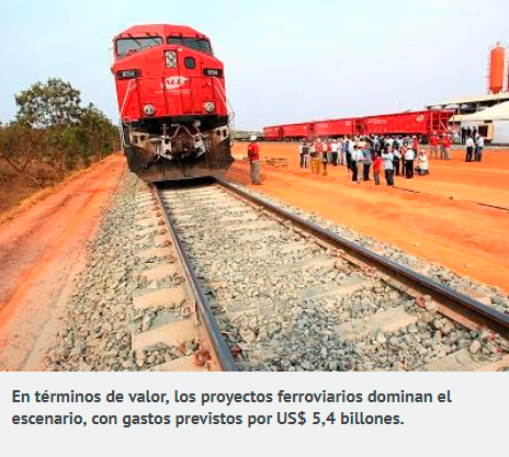 En términos de valor, los proyectos ferroviarios predominan, cuyo total asciende a los US$ 5,4 billones. Energía viene después, con inversiones planificadas por US$ 4,7 billones y entonces carreteras con US$ 2,6 billones.