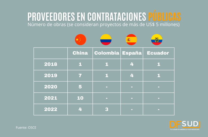 Entre los proveedores extranjeros que ganan la ejecución de obras públicas, los chinos han subido hasta el primer lugar en los últimos cinco años. Les siguen –aunque con una amplia diferencia– españoles, ecuatorianos y colombianos.