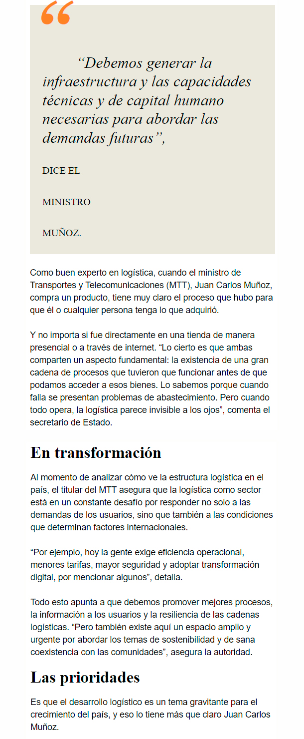 EL MERCURIO – Ministro Muñoz anunció una serie de proyectos que buscan hacer más eficiente el uso de los puertos y aumentar la capacidad de carga del ferrocarril de aquí a 2030.