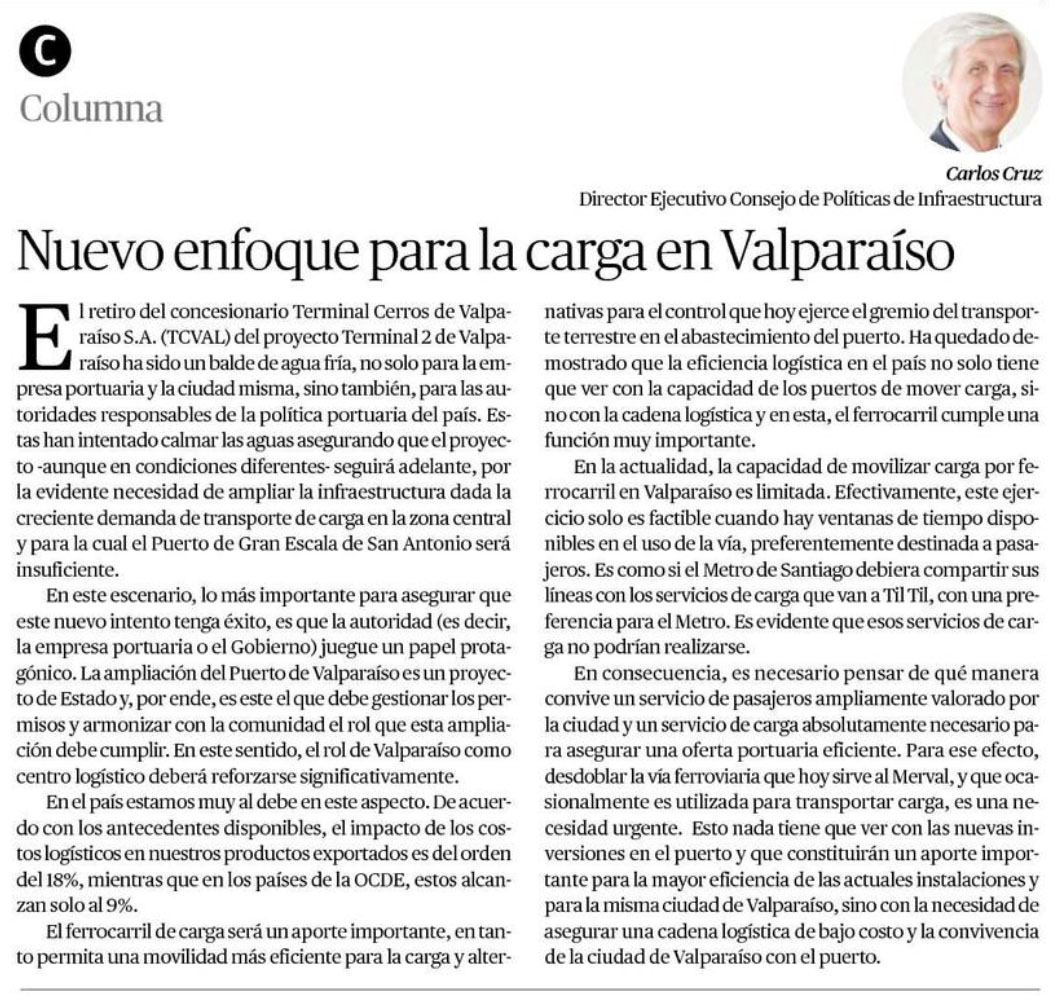 EL MERCURIO DE VALPARAÍSO – El retiro del concesionario Terminal Cerros de Valparaíso S.A. (TCVAL) del proyecto Terminal 2 de Valparaíso ha sido un balde de agua fría, no solo para la empresa portuaria y la ciudad misma, sino también, para las autoridades responsables de la política portuaria del país. Estas han intentado calmar las aguas asegurando que el proyecto -aunque en condiciones diferentes- seguirá adelante, por la evidente necesidad de ampliar la infraestructura dada la creciente demanda de transporte de carga en la zona central y para la cual el Puerto de Gran Escala de San Antonio será insuficiente.