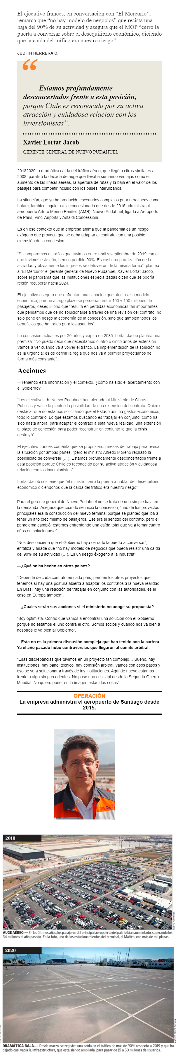 EL MERCURIO – El ejecutivo francés, en conversación con El Mercurio, remarca que “no hay modelo de negocios” que resista una baja del 90% de su actividad.