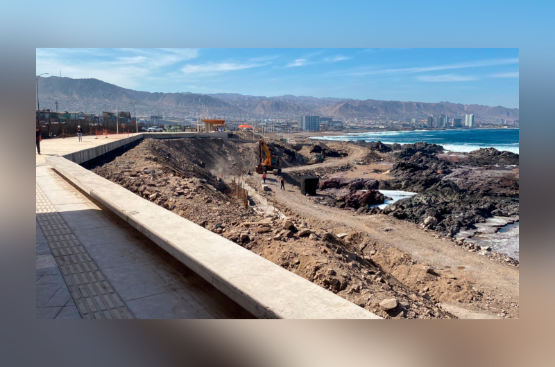 MADERO – Un 80% de avance presentan las Obras de Mejoramiento Borde Costero de Antofagasta, Sector Los Pinares – Trocadero, cuya inversión conjunta de la Dirección de Obras Portuarias del MOP y el Gobierno Regional a través del FNDR, superan los 12 mil millones de pesos.
