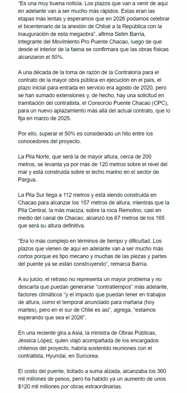 EL MERCURIO – En la zona destacan el hito pese a que la obra suma un largo retraso, porque debió estar inicialmente terminada en 2020