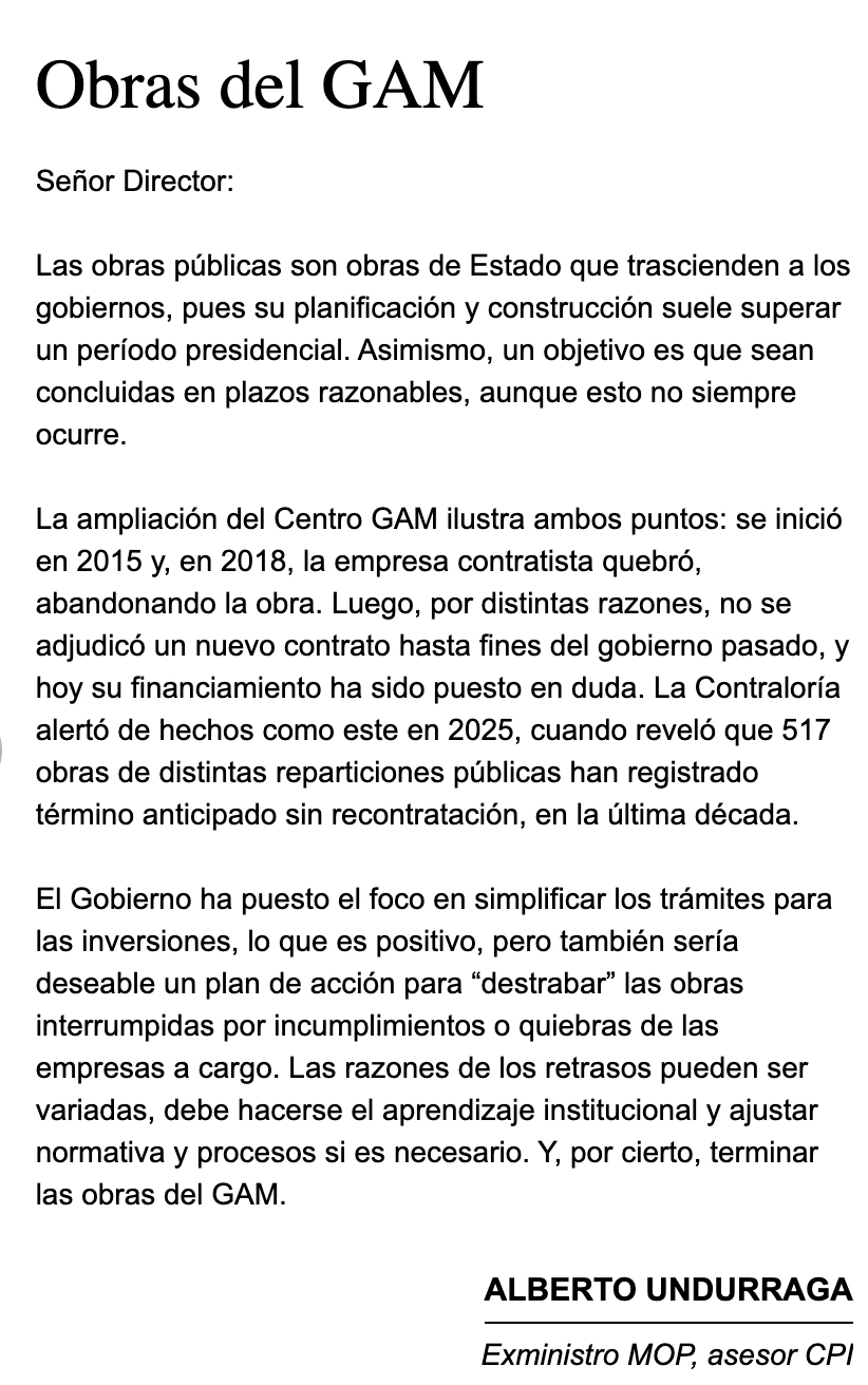 EL MERCURIO – Las obras públicas son obras del Estado que trascienden a los gobiernos, pues su planificación y construcción suele superar un período presidencial. Asimismo, un objetivo es que sean concluidas en plazos razonables, aunque esto no siempre ocurre