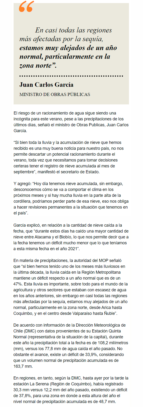 EL MERCURIO – Ministro García manifestó que si bien existe nieve acumulada, aún se requiere contar con el registro correspondiente al mes de septiembre para tomar decisiones certeras.