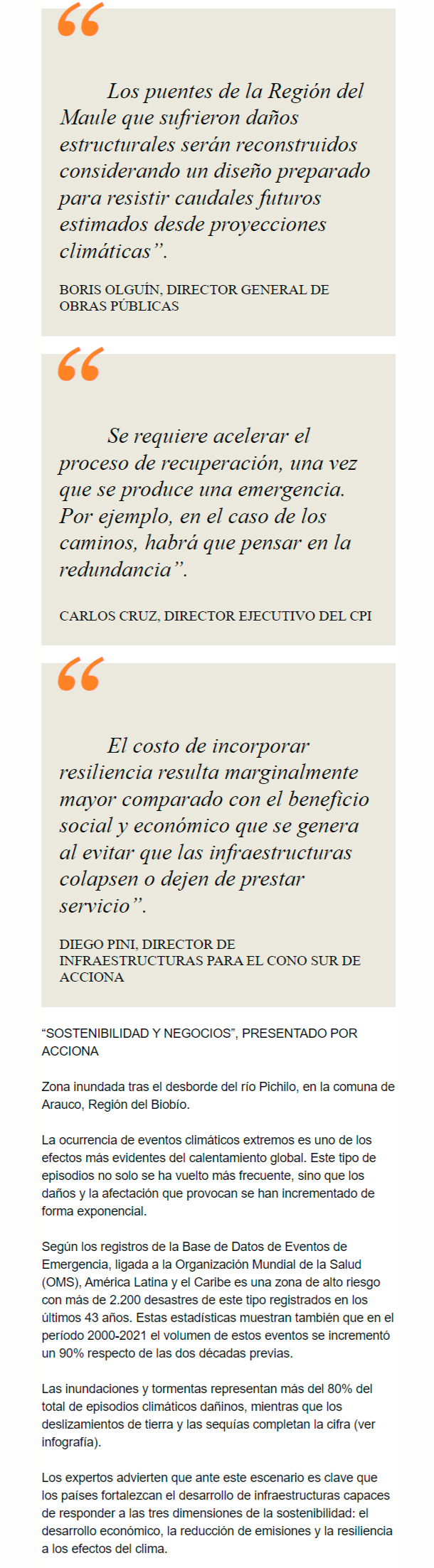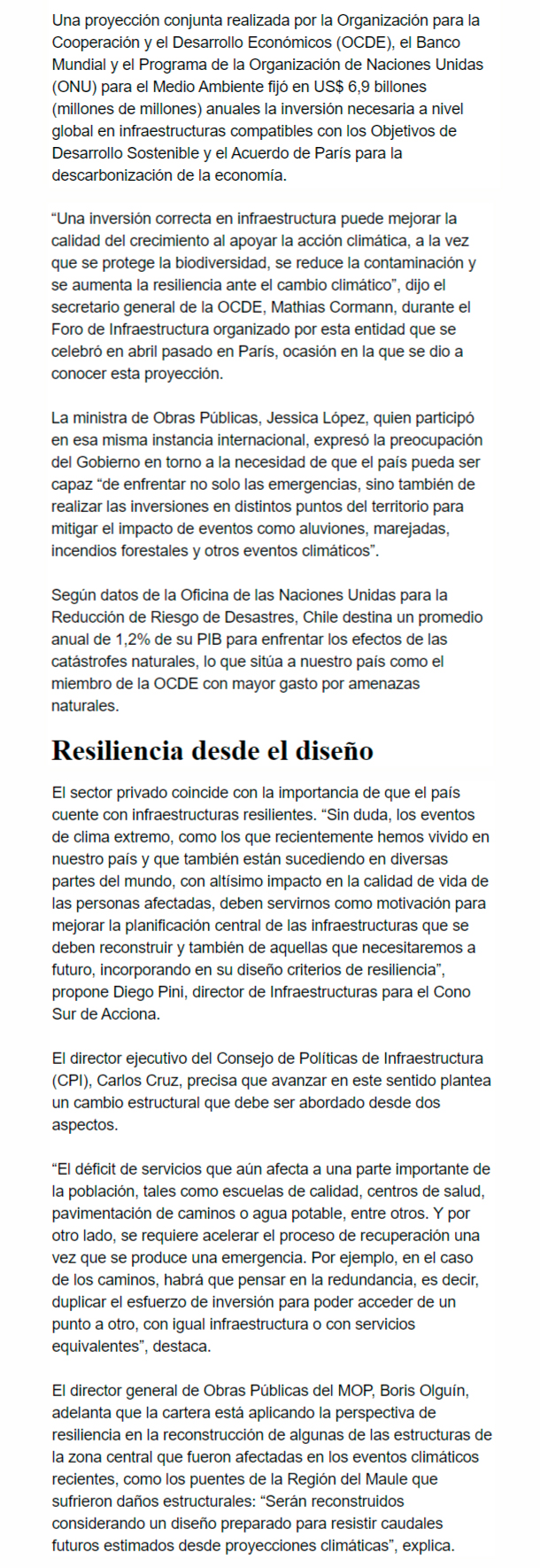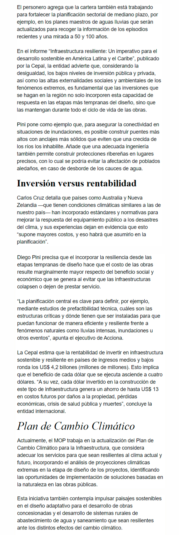 EL MERCURIO – La resiliencia es una de las tres dimensiones de la sostenibilidad y, según cálculos de la Cepal, la rentabilidad de este tipo de proyectos oscila en torno a cuatro dólares por cada dólar que se destina a mejorar la capacidad de respuesta de las construcciones ante fenómenos extremos