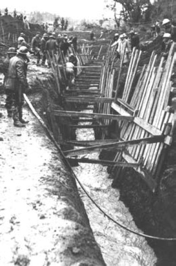 Los trabajos, dificultados por las abundantes lluvias, no cesaban. La maquinaria pesada quedaba inhabilitada por el lodo, dando paso a las rudimentarias palas. El esfuerzo de los obreros, voluntarios e ingenieros, sacaba adelante la tarea. Debieron abrir los canales a mano, labrando una gradería en el barro líquido. En los tramos más peligrosos –suelo arenoso–, debieron enmaderar para asegurar el correcto escurrimiento de las aguas. “Ellos pusieron al servicio de la gente, todos sus esfuerzos y el contingente disponible. Hicieron todo lo posible para salvar a Valdivia”, indica Orphanópoulos.