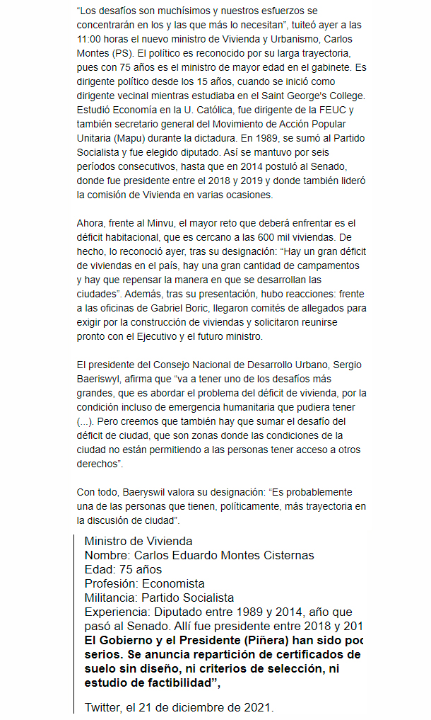 Fuente: El Mercurio, Sábado 22 de Enero de 2022