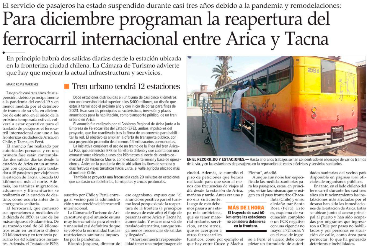 EL MERCURIO – En principio habría dos salidas diarias desde la estación ubicada en la fronteriza ciudad chilena. La Cámara de Turismo advierte que hay que mejorar la actual infraestructura.