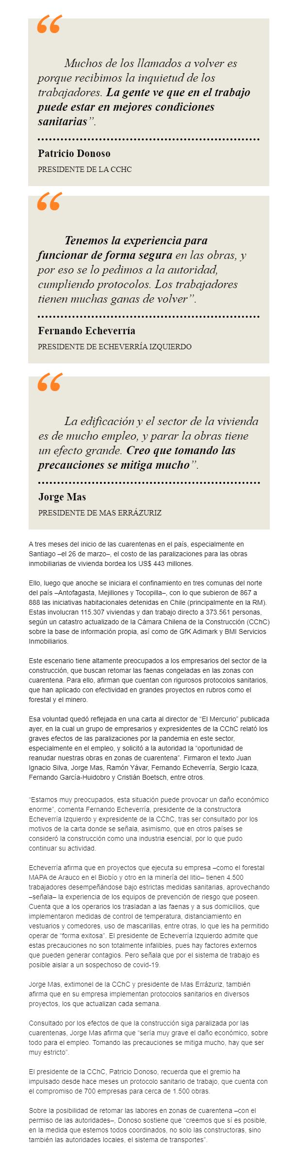 EL MERCURIO – Empresarios solicitan a las autoridades reanudar las labores en las zonas con restricciones sanitarias por el covid-19 y afirman que cuentan con los protocolos necesarios para ello.