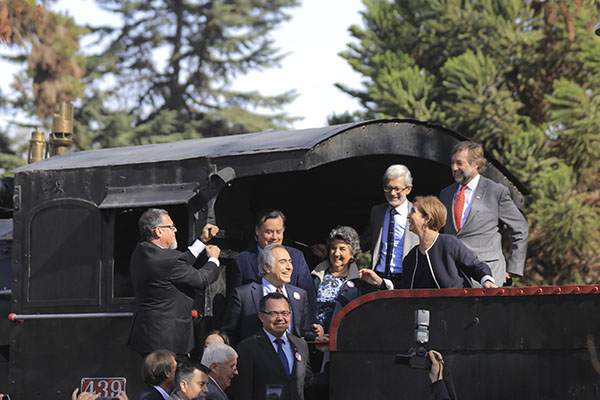 Los senadores por Valparaíso Francisco Chahuán (RN) y Ricardo Lagos Weber (PPD) también participaron del acto con los ministros de Obras Públicas y Transportes, y junto con defender un tren a la V Región le contestaron a Errázuriz, quien también había señalado que “siento que la ciudad de Valparaíso no tiene tanta vocación portuaria hoy”.