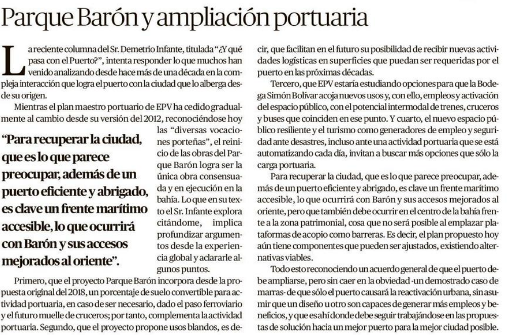 EL MERCURIO DE VALPARAÍSO – Para recuperar la ciudad, que es lo que parece preocupar, además de un puerto eficiente y abrigado, es clave un frente marítimo accesible, lo que ocurrirá con Barón y sus accesos mejorados al oriente