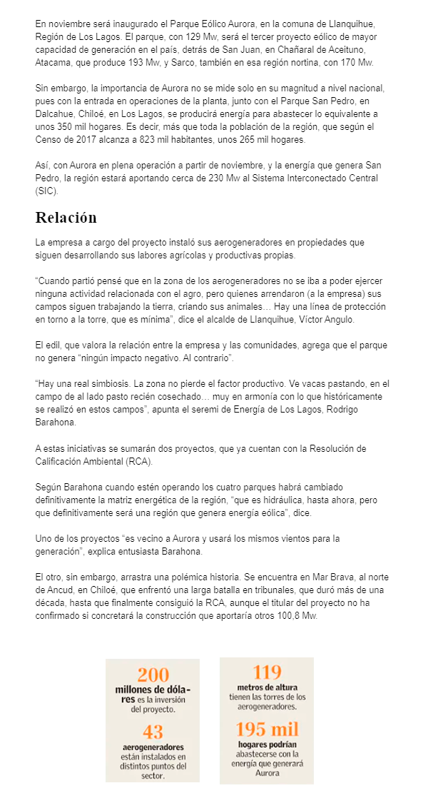 Parques eólicos en Los Lagos generarán energía capaz de abastecer a toda la región