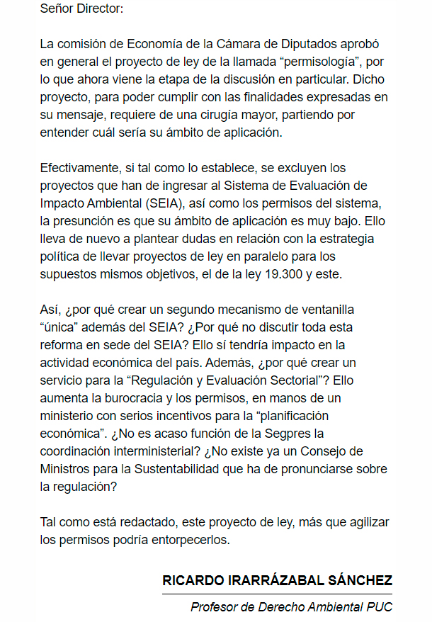 EL MERCURIO – Tal y como está, este proyecto de ley, más que agilizar los permisos podría entorpecerlos