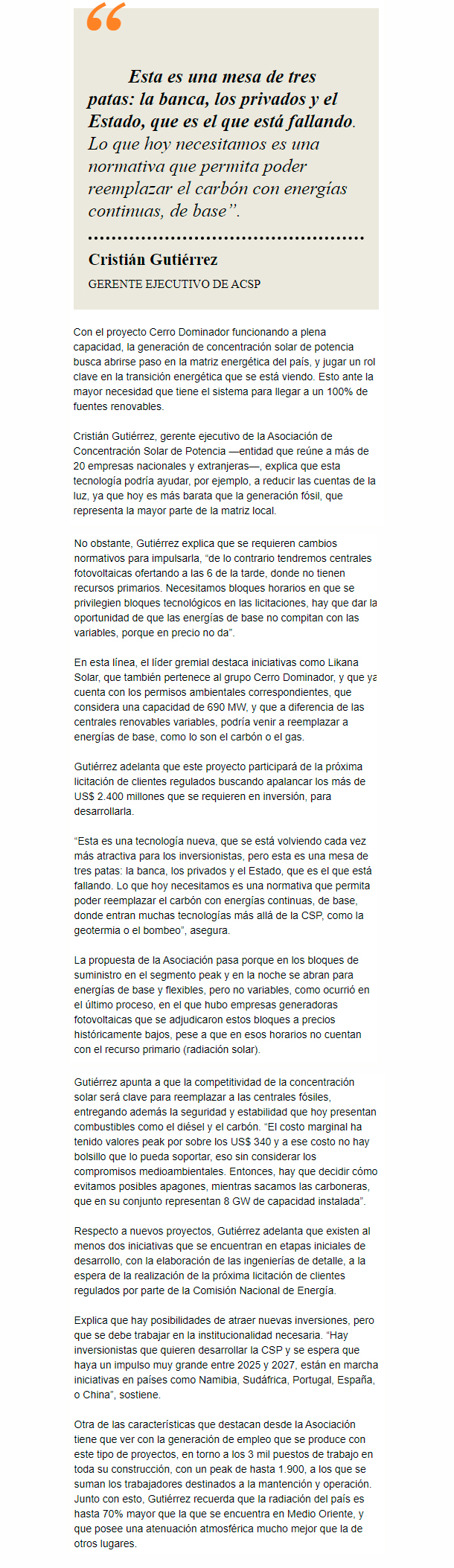 EL MERCURIO – Al ser proyectos de grandes inversiones, el gremio que los representa apunta a fomentar el protagonismo de etas fuentes en las próximas licitaciones.