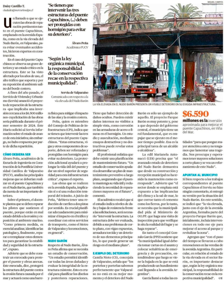 EL MERCURIO DE VALPARAÍSO – Infraestructura del puente Capuchinos, en la neurálgica avenida España, se encuentra en un crítico estado