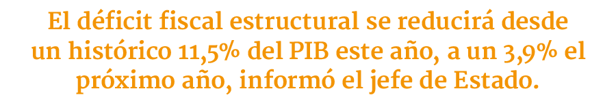 También se priorizará el reordenamiento de las arcas fiscales, con un déficit estructural que pasará del 11,5% del PIB este año a 3,9% el siguiente.