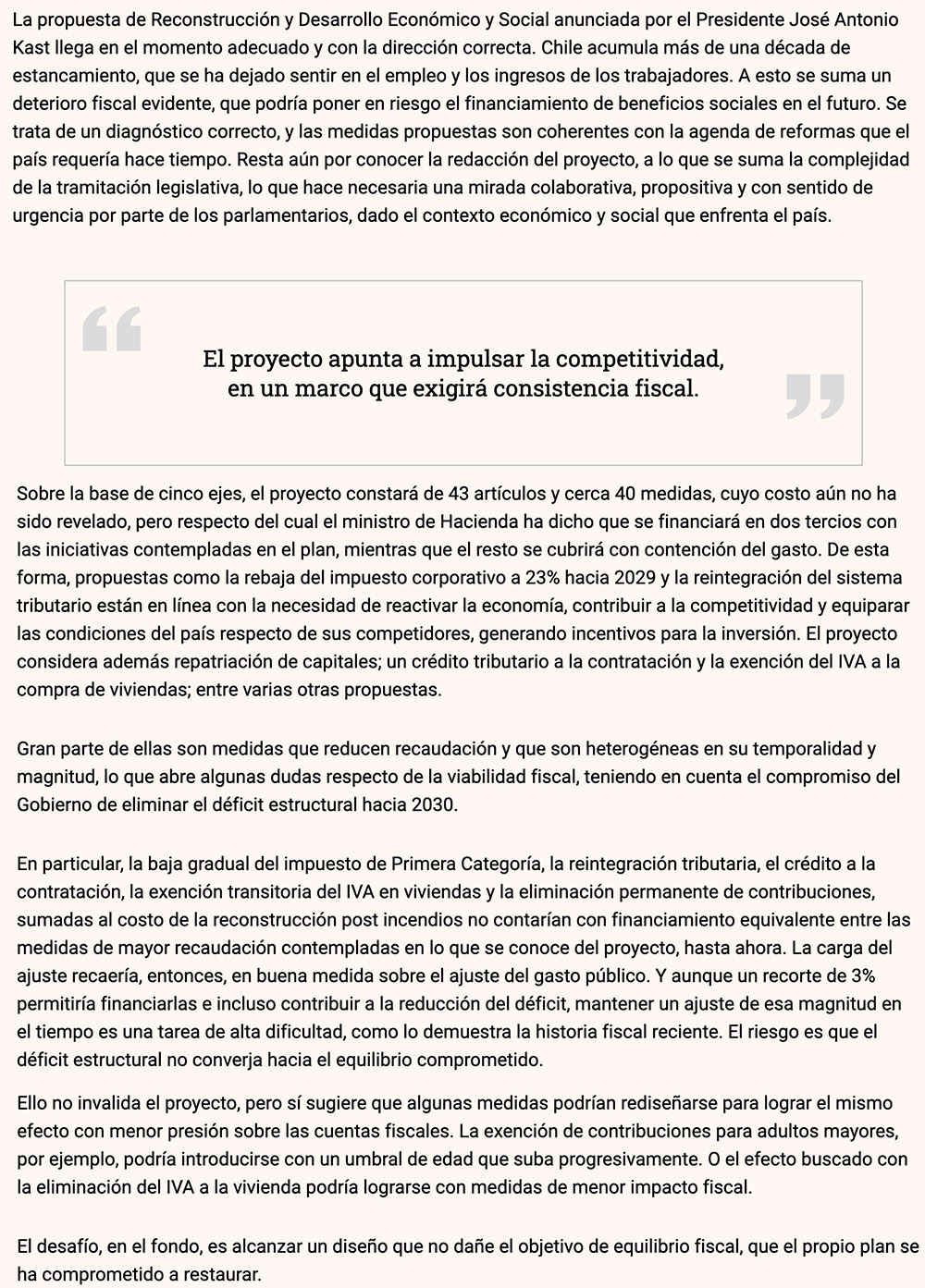 DIARIO FINANCIERO – La propuesta de Reconstrucción y Desarrollo Económico y Social anunciada por el Presidente José Antonio Kast llega en el momento adecuado y con la dirección correcta
