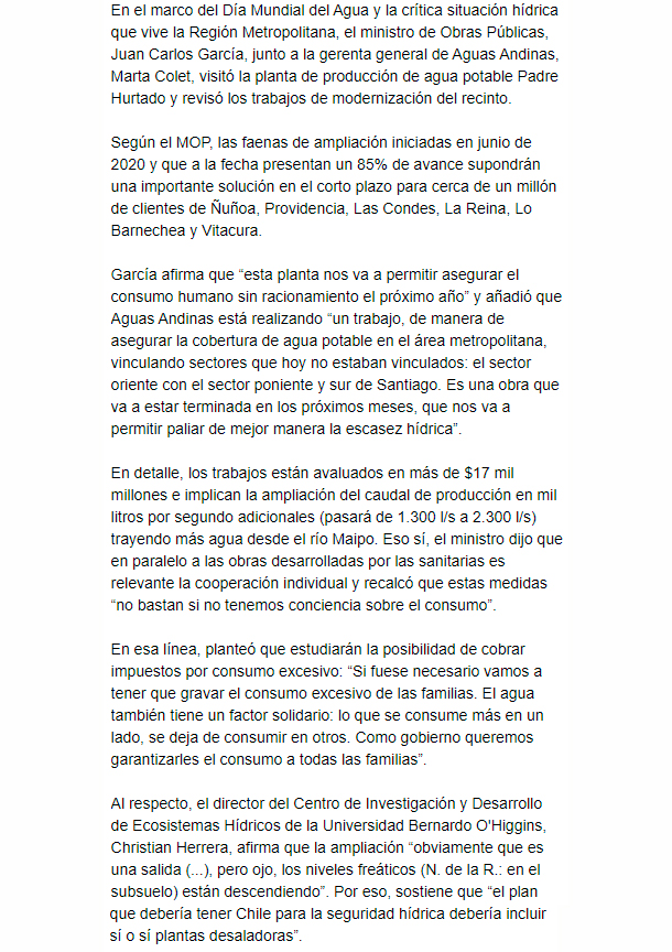 Fuente: El Mercurio, Miércoles 23 de Marzo de 2022