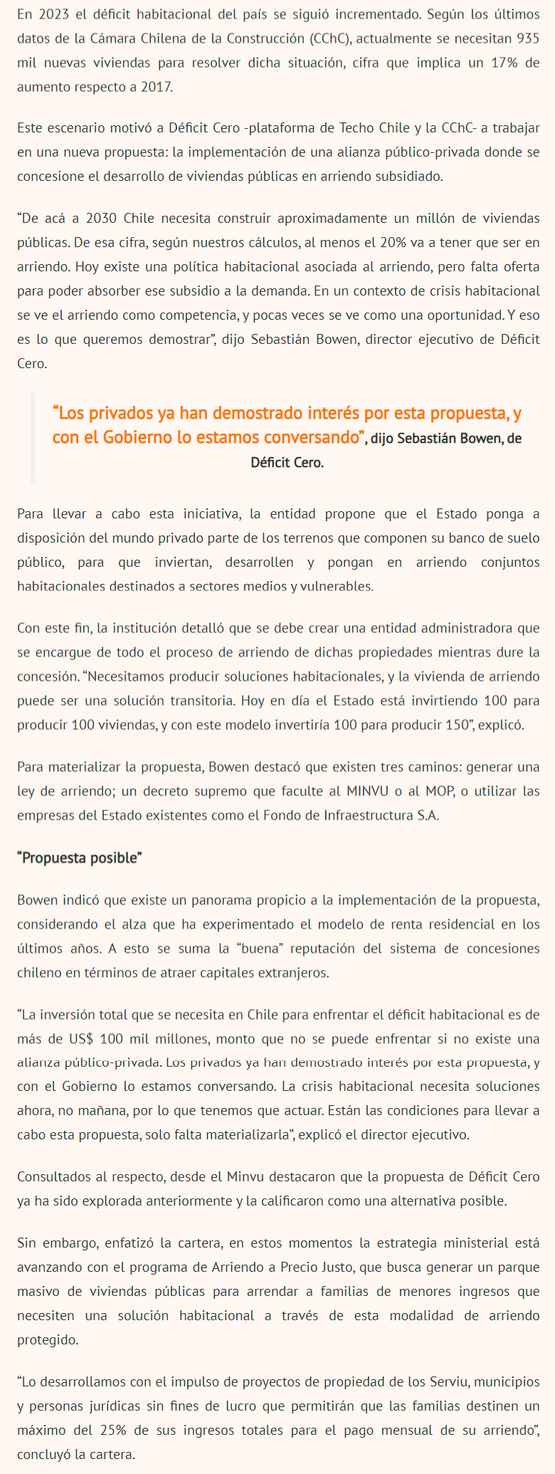 DIARIO FINANCIERO – Déficit Cero apunta a implementación de modelo con 200 mil unidades a 2030. Entidad destacó el interés que existe de parte de los privados.