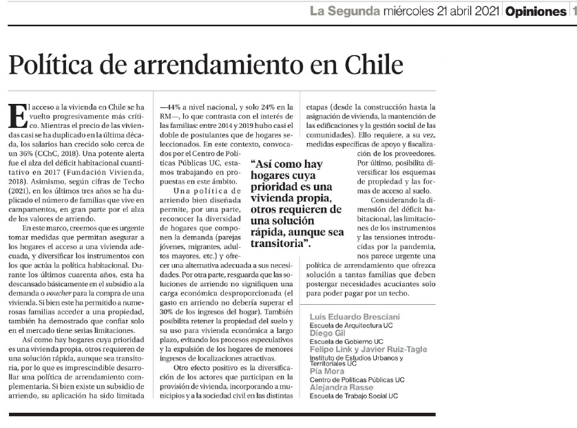 Fuente: La Segunda, Miércoles 21 de abril de 2021