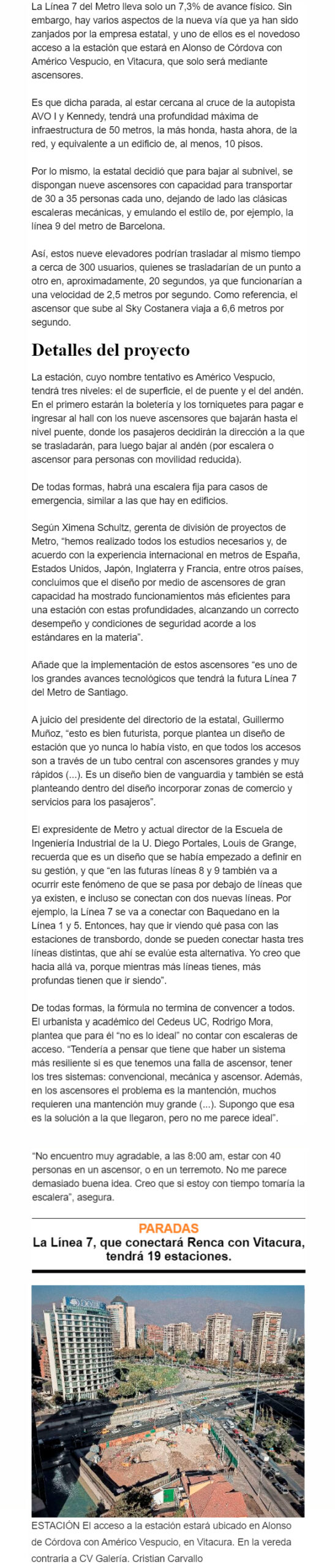 EL MERCURIO – Debido a lo hondo de dicha detención, la empresa resolvió que la entrada sea mediante nueve elevadores. Fórmula replica casos de EE.UU., Japón o Europa.