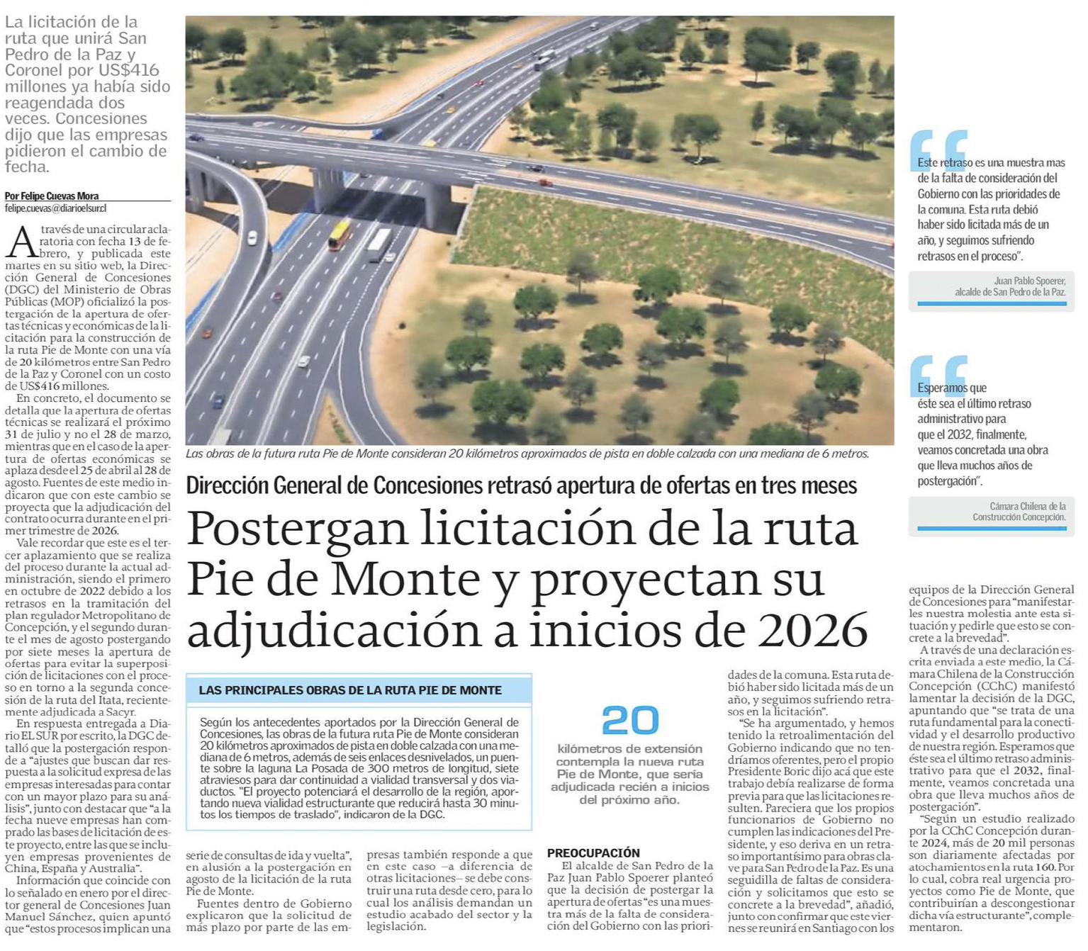 EL SUR – Dirección General de Concesiones retrasó apertura de ofertas en tres meses