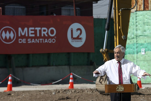 EL LIBERO – El Presidente Sebastián Piñera, acompañado de la ministra de Transportes, Gloria Hutt, y el presidente de Metro, Louis de Grange, dio inicio a las obras de construcción de una nueva estación de Metro de la Línea 2 en El Bosque, parte del plan de obras de ampliación de la red de transporte.