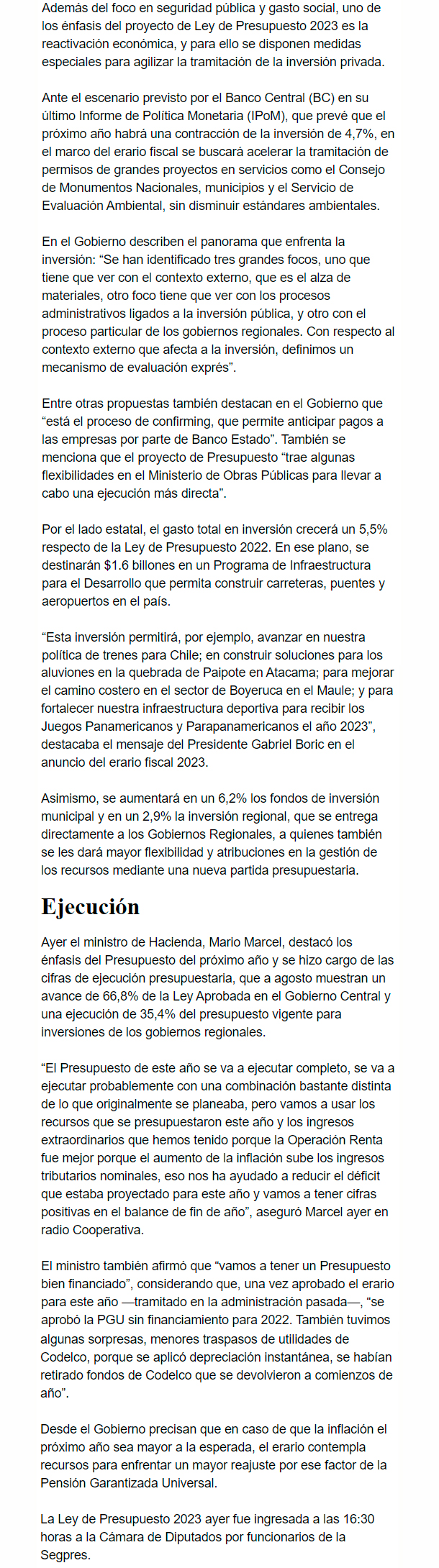 Fuente: El Mercurio, Sábado 1 de Octubre de 2022